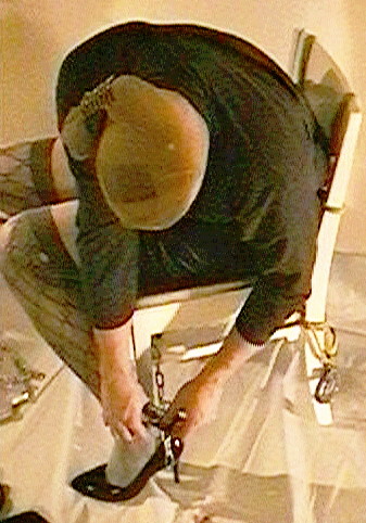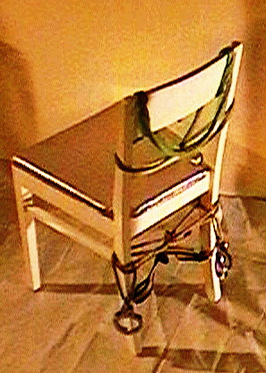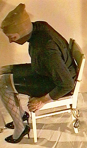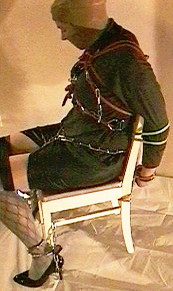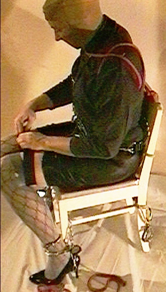 Preparing the third chain for breasts, the feet are locked very tight to the chair, so that the chair could not be moved easily by "hopping".