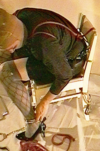 Susan Says: I recorded this series on a video camera and grabbed these pictures. The whole session lasted 3 hours: 1 hour planning, 45 min tying me up and the rest for releasing.