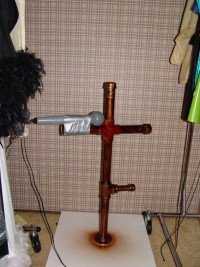 Sir,. I understand your disappointment in me and will accept my punishment. I have set up my Penitence Stand (see photo) in front of my computer. I opened and slipped two heavy-duty condoms over the pussy insertion pipe. I strapped the vibrator to the front horizontal pipe securely so it won't move even if I do. The vibrator is positioned so when I slip the vertical pipe into my pussy, my clit will come to rest on the head of the vibrator even if I a standing on my tip toes.
